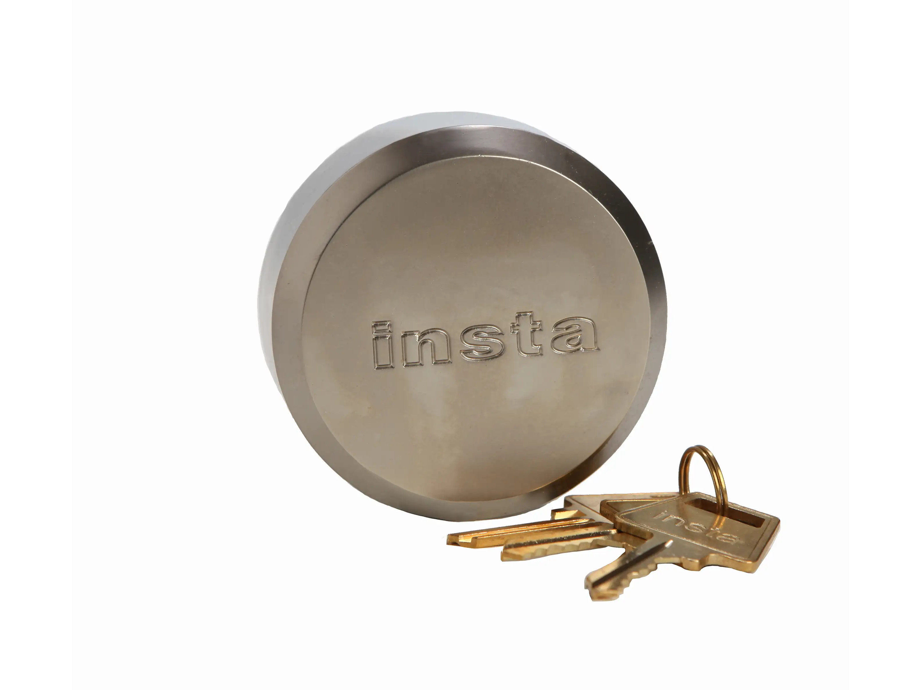 These INSTA Puck Locks are designed for commercial/industrial applications. Featuring a 2 7/8” (73mm) wide reinforced die cast body that withstands forcible attacks. The lock body conceals the shackle which defeats attempts to pry and cut. The lock is available in keyed alike (#6272) or keyed different (#6273) options.
